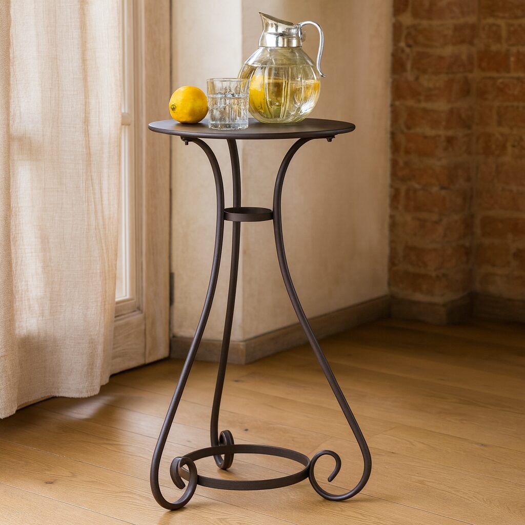 Beschreibung Weniger ist oftmals mehr. Dies gilt auch für diese kleines, aber feine nostalgische Kaffeehaus-Tischchen. Schöner Blickfang des rostbraunen Outdoor-Möbelstücks ist dabei das ornamental geschwungene Tischgestell aus Eisen. Die drei Beine sind durch einen Ring verbunden und sorgen somit für einen stabilen Stand. Die runde Tischplatte bietet auf dem Beistelltisch ausreichend Platz für ein bis zwei Getränke sowie der passenden Lektüre für ein paar entspannte Stunden auf der Terrasse oder auf dem Balkon. Aufgrund seiner Größe lässt sich der Tisch ganz problemlos umstellen – je nachdem wo er gerade gebraucht wird. Dank der wetterfesten Patina kann der Tisch sogar über längere Zeit und bei widrigen Bedingungen draußen stehen bleiben – ohne an Schönheit einzubüßen.
