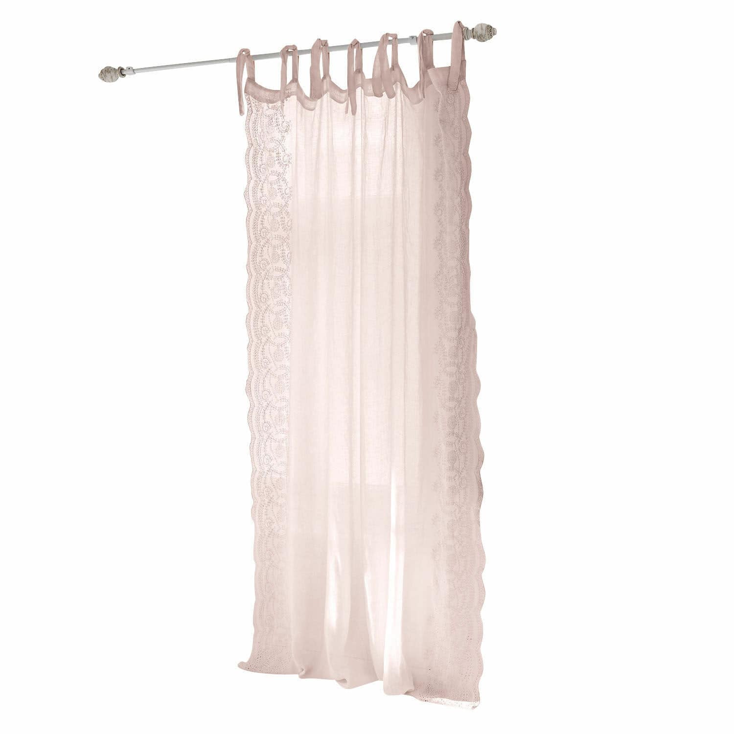 Beschreibung Für Liebhaber des Vintage-Romantik-Stils ist diese exquisite Gardine ein Muss. Sie verleiht jedem Raum eine behagliche Atmosphäre dank ihres natürlich schönen Leinengewebes und sanften Farbtons. Diese Kombination erzeugt ein außergewöhnliches Flair und ein Gefühl von wohliger Wärme. Die charmante Broderie Anglaise, die entlang der langen Kanten verläuft, fügt eine zusätzliche Note von Verspieltheit hinzu und verleiht der Gardine einen unwiderstehlichen Look. Die feine Lochspitze, die ihren Ursprung in Tschechien hat, verleiht der Gardine einen zarten und doch lässigen Charakter. Sie erlebt nicht nur in der Modewelt, sondern auch in der aufregenden Welt des Interieurs ein Comeback. Die Gardine wird durch lange Bindebänder ergänzt, die eine dekorative und gleichzeitig einfache Befestigung an der Vorhangstange ermöglichen. Diese Gardine ist nicht nur ein entzückender Blickfang am Fenster, sondern schützt auch vor starker Sonneneinstrahlung und taucht den Raum in ein traumhaftes Licht.