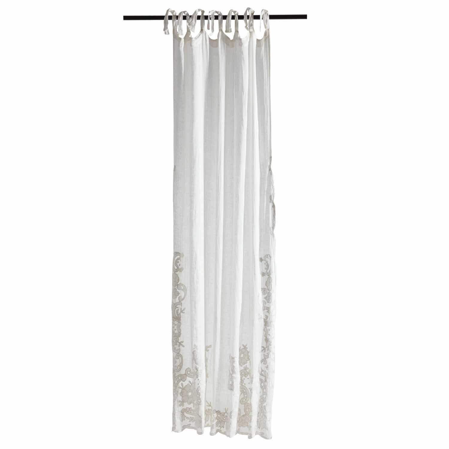 Haben Sie sich je gefragt, wie Sie den Sommer das ganze Jahr über in Ihrem Zuhause festhalten können? Die Antwort liegt in dieser fein gewebten Leinengardine im charmanten Landhaus-Stil. Der transparente Stoff ist leicht und fließend, bietet jedoch genügend Schutz, um starke Sonneneinstrahlung abzuwehren und Ihnen einen ungestörten Schlaf zu ermöglichen. Diese attraktive Gardine ist nicht nur für das Schlafzimmer geeignet, sie verleiht auch jedem anderen Raum eine unwiderstehliche Ausstrahlung. Ihre dezente Farbe und die halbseitige Stickerei am unteren Rand ergänzen jeden Einrichtungsstil perfekt.