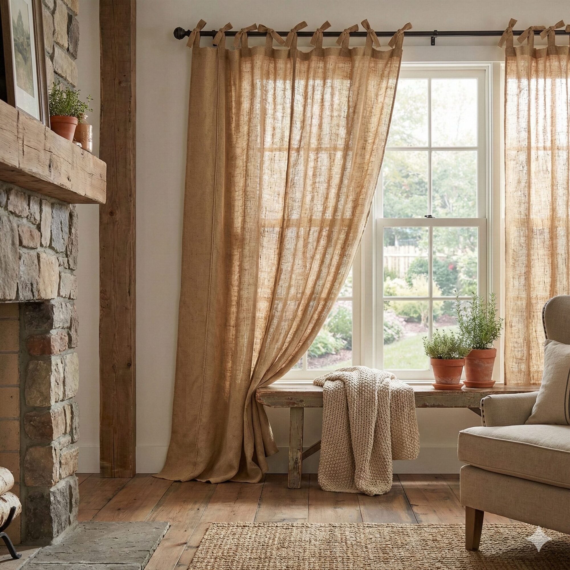 Die Gardine aus reiner Jute zeichnet sich durch ihr klares und puristisches Design aus, das ohne jegliche Verzierungen oder Ornamente auskommt. Ihr schlichter Chic und ihre natürliche Ausstrahlung sind überzeugend. Sie fällt elegant und verleiht Ihren Räumen ein dezentes Ambiente. Mit dekorativen Bindebändern kann sie einfach an einer Gardinenstange befestigt werden. Sie setzt einen angenehm erdigen Akzent, der sowohl zum Landhaus-Stil als auch zum Shabby-Chic passt.