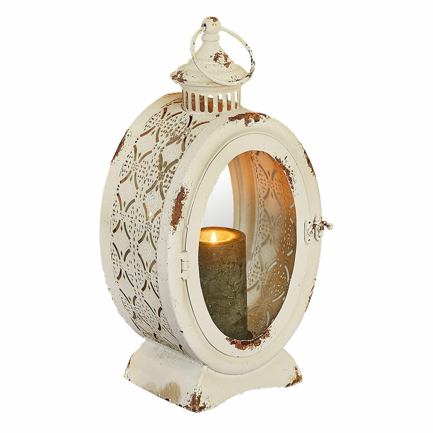 Lassen Sie Ihr Heim in dem behaglichen Schein dieser im Antikstil gehaltenen Laterne erstrahlen. Mit ihrem kunstvoll verzierten Eisengestell bringt sie nicht nur Helligkeit, sondern auch eine Spur von Geschichte und Persönlichkeit in Ihr Zuhause. Jede Biegung und jeder Winkel des fein durchbrochenen Musters wurde mit großer Sorgfalt gestaltet und ergibt ein romantisches Design, das die Quintessenz eines liebevoll gealterten Familienschatzes einfängt. Das rustikale Kerzenlicht, das durch das filigrane Gitterwerk der Laterne tanzt, erzeugt eine einladende Atmosphäre, die beruhigend wirkt und die Gedanken in vergangene Zeiten entführt. Diese Laterne ist eine Ode an die Vergangenheit und gleichzeitig ein zeitloses Stück, das mit seinem Halter für Stumpenkerzen sowohl praktisch als auch visuell ansprechend ist.