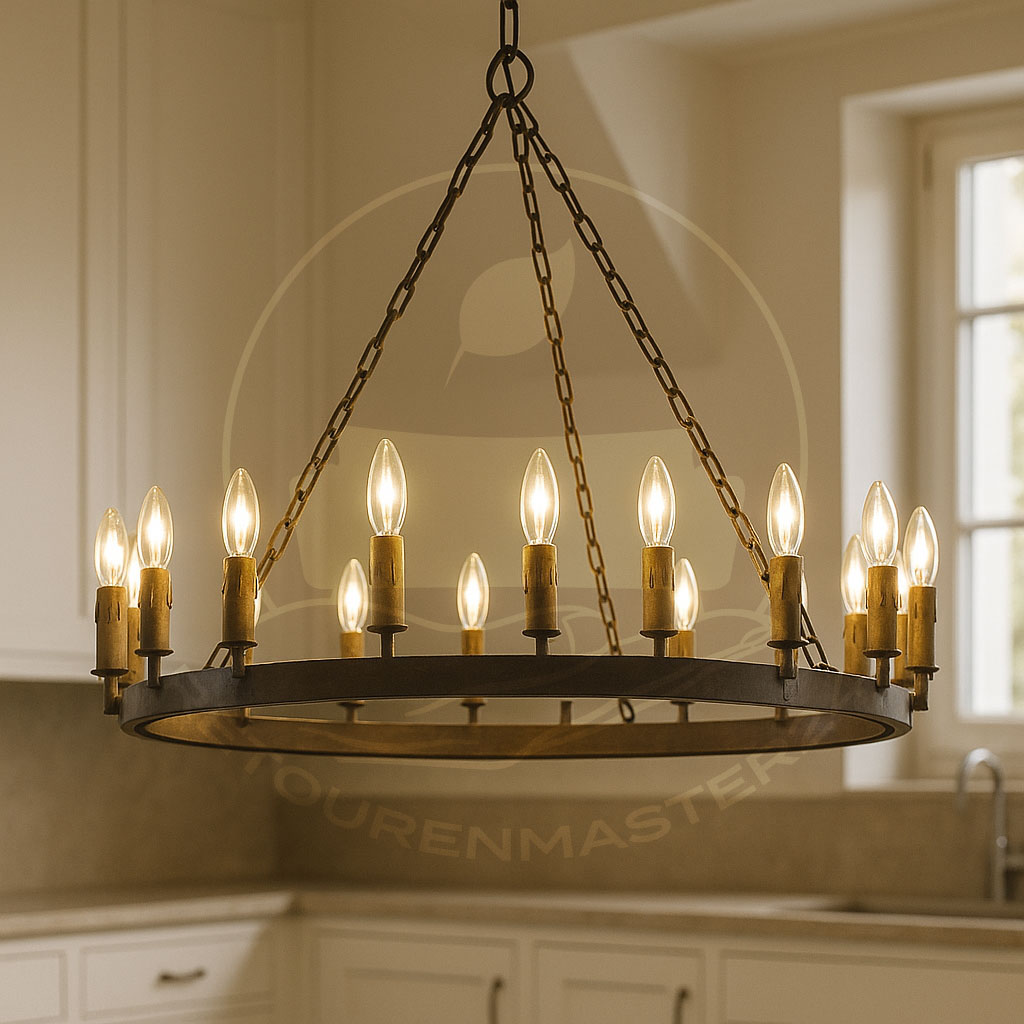 Dieser beeindruckende Kronleuchter ist ein echtes Kunstwerk. Er besteht aus Eisen mit einem matten Finish und wird von insgesamt sechzehn Leuchten erhellt (nicht im Lieferumfang enthalten), die jedem Raum ein strahlendes Ambiente verleihen. Mit einer dekorativen Kette befestigt, ist er ein bemerkenswertes Highlight in jeder Umgebung. Sein unaufdringliches Design ist zeitlos und passt perfekt in ein Loft, zum Industrial-Stil oder in eine klassische Einrichtung. Mit diesem ästhetischen und qualitativ hochwertigen Deko-Element bringen Sie einen einzigartigen Akzent in Ihr Zuhause, der Ihnen über Jahre hinweg Freude bereiten wird.