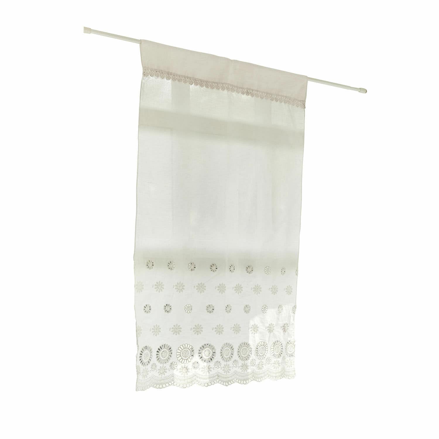 Auch Vorhänge tragen dazu bei, eine behagliche Atmosphäre in einem Raum zu schaffen. Wenn sie so elegant und charmant aussehen wie diese Scheibengardine, kann ihre Wirkung besonders stark sein. Das Design ist nostalgisch romantisch mit einer feinen Stickerei am oberen Rand, hübschen Blumenstickereien am unteren Rand und einer abschließenden Bogenkante mit Hohlsaumstickerei. Das Modell basiert auf reinem Baumwollstoff, der dicht genug ist, um unerwünschte Blicke fernzuhalten, aber gleichzeitig genug Tageslicht durchlässt. Dank des Tunnelzugs lässt sich die Gardine schnell und einfach auf eine Vorhangstange aufziehen. Das Textil fügt sich perfekt in den Landhaus-Stil oder Vintage-Chic ein.