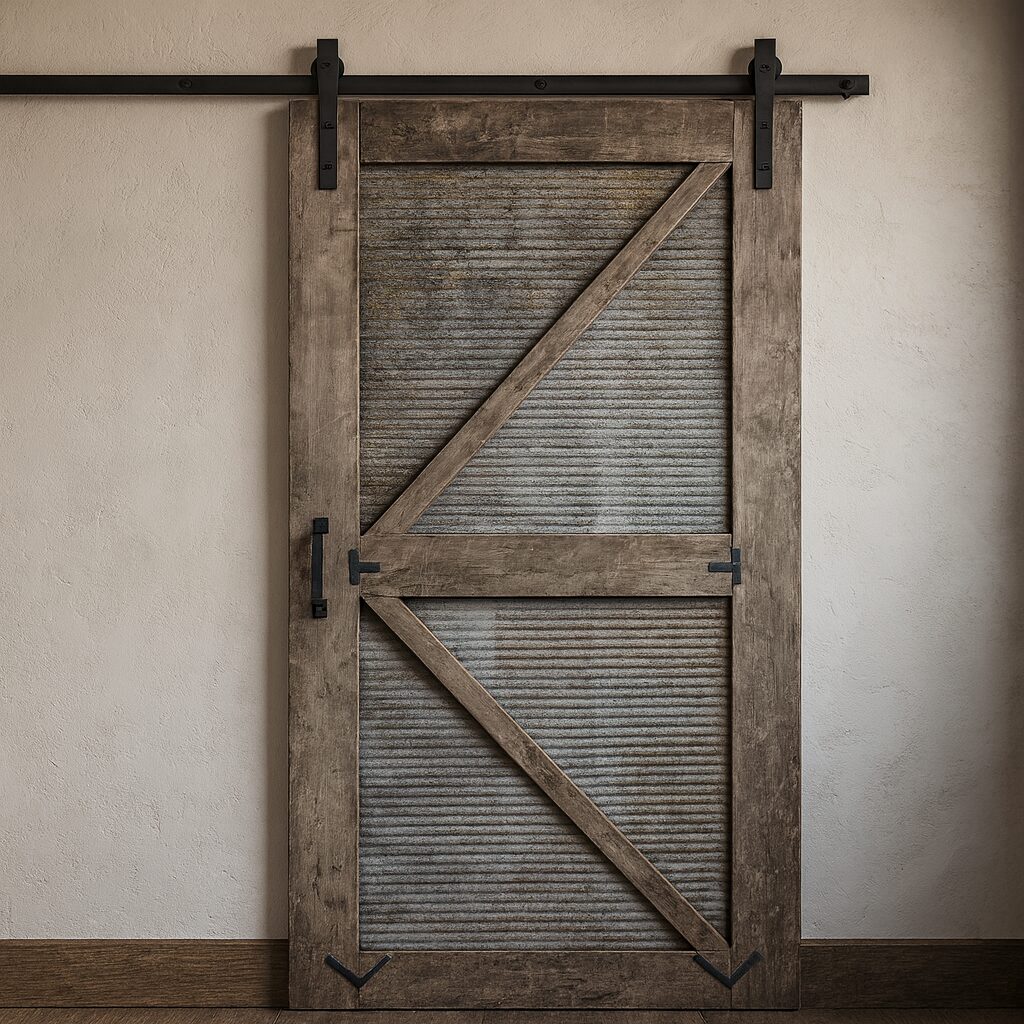 Es bleibt ein Rätsel, welche Funktion das robuste Kiefernholz zuvor erfüllt hat, doch nun wurde es sorgsam aufbereitet und dient als beeindruckende Schiebetür. Mit einem antikgrauen Anstrich versehen, wirkt die Tür noch eindrucksvoller und die einzigartige Maserung kommt besonders zur Geltung. Beide Seiten der Tür sind gleich gestaltet. Die Zinkgriffe, die nur auf der Vorderseite angebracht sind, tragen zum authentischen, rustikalen Aussehen bei. Vollendet wird das Gesamtbild durch die mitgelieferte Eisenschiene. Dank zwei angebrachten Eisenscharnieren lässt sich die Tür problemlos in der Schiene befestigen und bewegen. Dieses stilvolle Highlight liegt voll im Trend und setzt in einem hellen, dezent eingerichteten Raum einen besonders attraktiven Akzent. Auf Wunsch können Sie dieses Schmuckstück auch als außergewöhnliches Deko-Element für Ihre Wohnzimmerwand verwenden. Die bewundernden Blicke Ihrer Gäste sind Ihnen dabei garantiert.