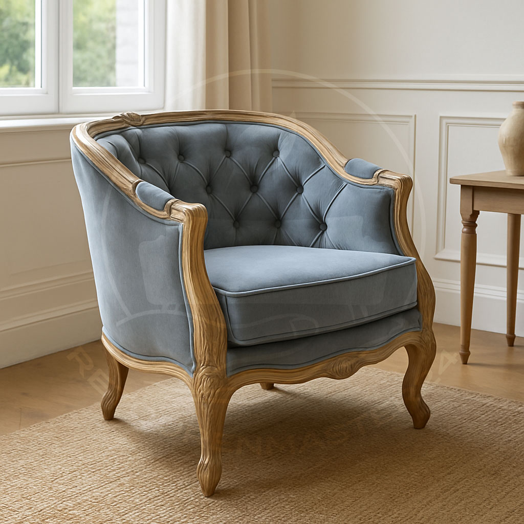 Bereiten Sie sich schon einmal auf einen eleganten Auftritt vor, denn dieser Sessel hat das Potenzial, der wahre Höhepunkt in Ihrem Zuhause zu werden. Inspiriert von den berühmten Sesseln der Rokoko-Epoche, vereint er alle charakteristischen Designelemente des 18. Jahrhunderts. Der geschwungene Rahmen aus edlem Mangoholz ist kunstvoll mit liebevollen Verzierungen und feinen Schnitzereien versehen, während die Füße und das antike Finish den historischen Charme perfekt abrunden. Der Bezug hingegen bietet eine moderne Interpretation des Stils und ist in Leinen oder Samt erhältlich. Mit einem schlichten Design und einem dekorativen Keder, der das Sitzkissen elegant umrahmt, fügt sich der Bezug harmonisch ins Gesamtbild ein. Dank der hochwertigen Schaumstoffpolsterung und des zusätzlichen Sitzkissens bleibt der Sessel auch bei längerem Sitzen stets komfortabel. Besonders ins Auge fallen die großen Nagelköpfe der Chesterfield-Steppung, die als markantes Stilelement an die Sessel und Sofas des Rokoko erinnern.