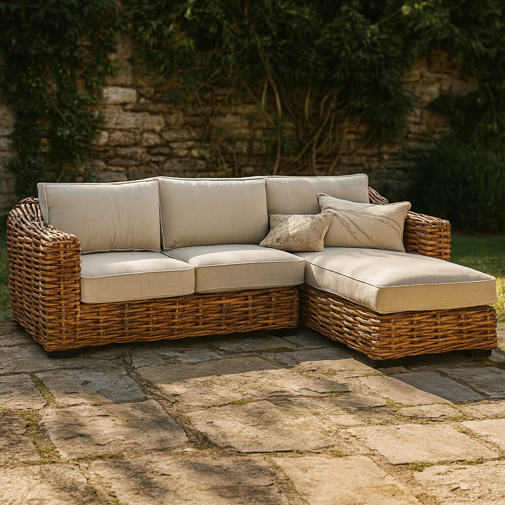 Ein besonderes Highlight ist das Geflecht aus extra dicken, authentischen Rattanstäben. Die Herstellung dieses Geflechts war selbst für den erfahrenen Korbflechter eine Herausforderung. Im Gegensatz zu Bambus sind Rattanstäbe nicht hohl, sondern massiv, obwohl sie schnell wachsen. Zusammen mit dem unsichtbaren Gestell aus massivem Mahagoniholz erhalten Sie ein Möbelstück, das über viele Jahre hinweg für beste Stabilität und Langlebigkeit sorgt.