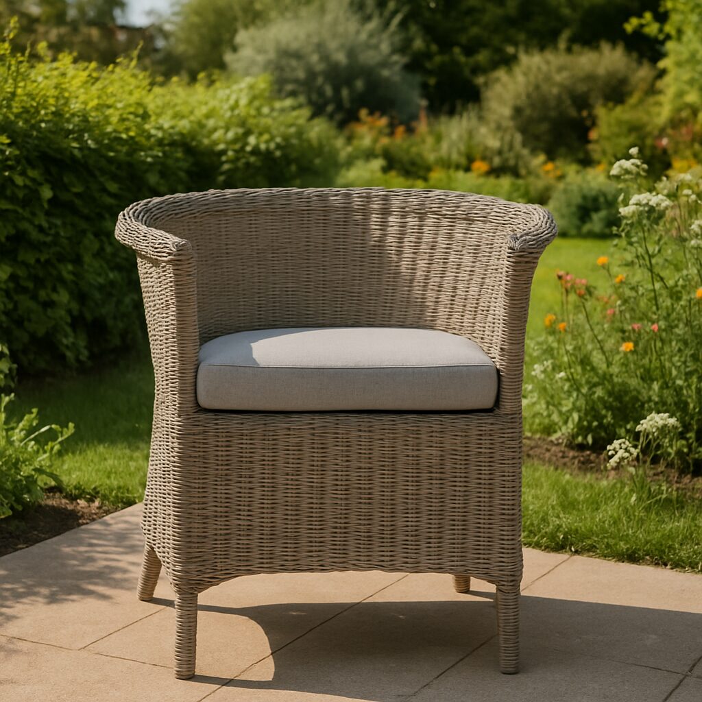 Der Stuhl, mit seinen geschwungenen Linien und robustem Polyrattan, bietet nicht nur ein elegantes Highlight auf Ihrer Terrasse, sondern gewährleistet auch einen besonderen Komfort für Sie und Ihre Gäste während entspannender Stunden. Die Rücken- und Armlehne sind so konzipiert, dass sie eine Einheit bilden und sanft, aber effektiv stützen. Das im Stuhl enthaltene Sitzkissen trägt zu einem einzigartigen Komfortgefühl bei, dank seines Bezugs aus der modernen Olefin-Faser, die für ihre hervorragenden Outdoor-Eigenschaften, UV-Beständigkeit und Wasserabweisung bekannt ist. Darüber hinaus bietet das Gewebe das Gefühl einer atmungsaktiven Naturfaser und ist leicht zu reinigen. Der Stuhl selbst ist aus Polyrattan, einem äußerst stabilen und robusten Naturmaterial, gefertigt. Das Geflecht erscheint so gleichmäßig, als wäre es maschinell gefertigt, doch in Wahrheit wurde es von einem Meisterhandwerker traditionell um ein stabiles Eisengestell gewoben. Mit diesem Stuhl erwerben Sie einen Klassiker, der schnell zu Ihrem bevorzugten Sommersitzplatz werden wird. Um eine lange Lebensdauer zu gewährleisten, empfehlen wir, den Stuhl während der Wintermonate an einem geschützten Ort aufzubewahren.