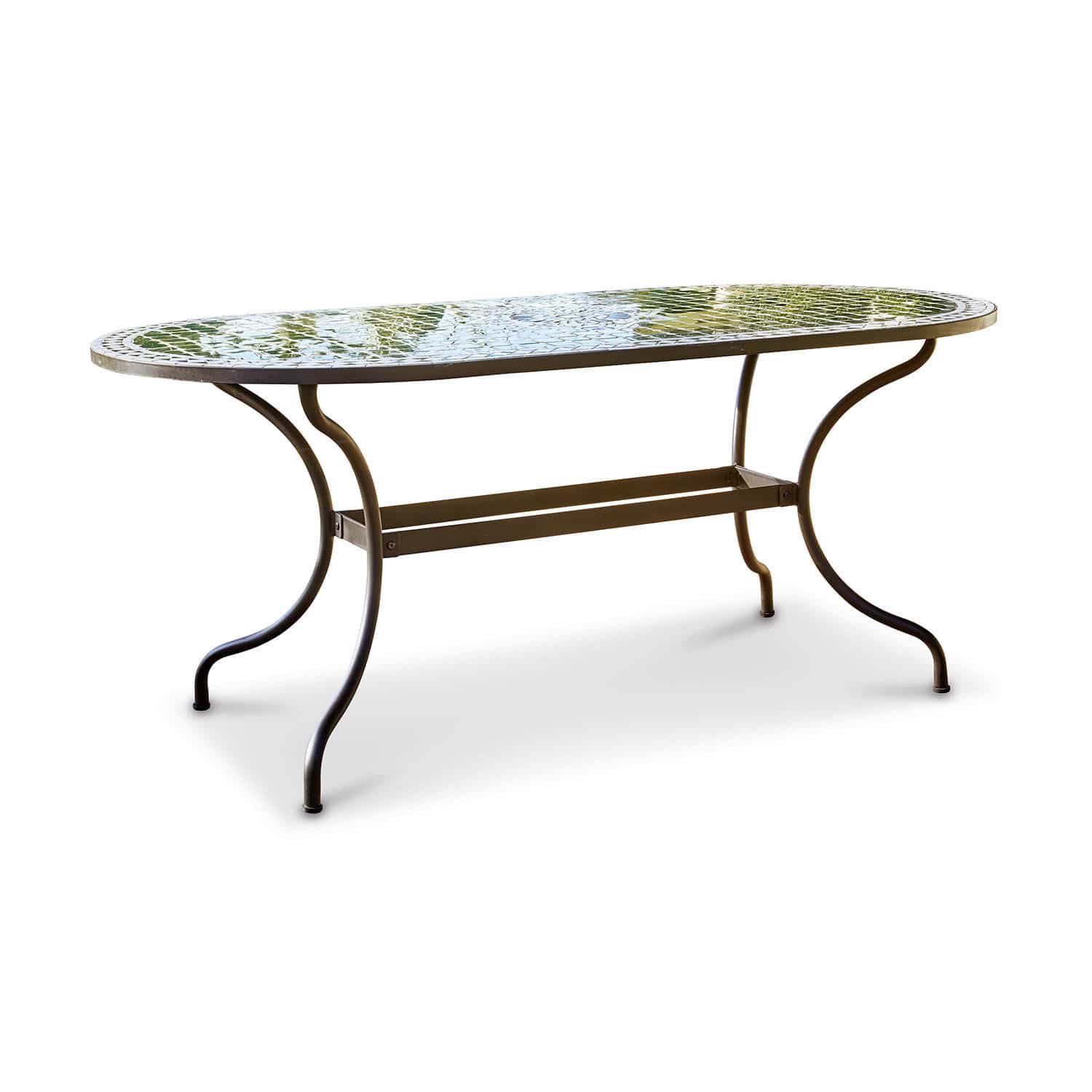 Ein solcher Tisch wird zu einem Schmuckstück, das Ihren Außenbereich mit seinem einzigartigen Charme bereichert. Ob Sie den Tisch mit handgeschmiedeten Eisenstühlen oder gemütlichen Korbsesseln kombinieren, bleibt Ihnen überlassen. Mit seinem kunstvollen Mosaik wird der Tisch immer der strahlende Mittelpunkt Ihrer Sitzgruppe sein.