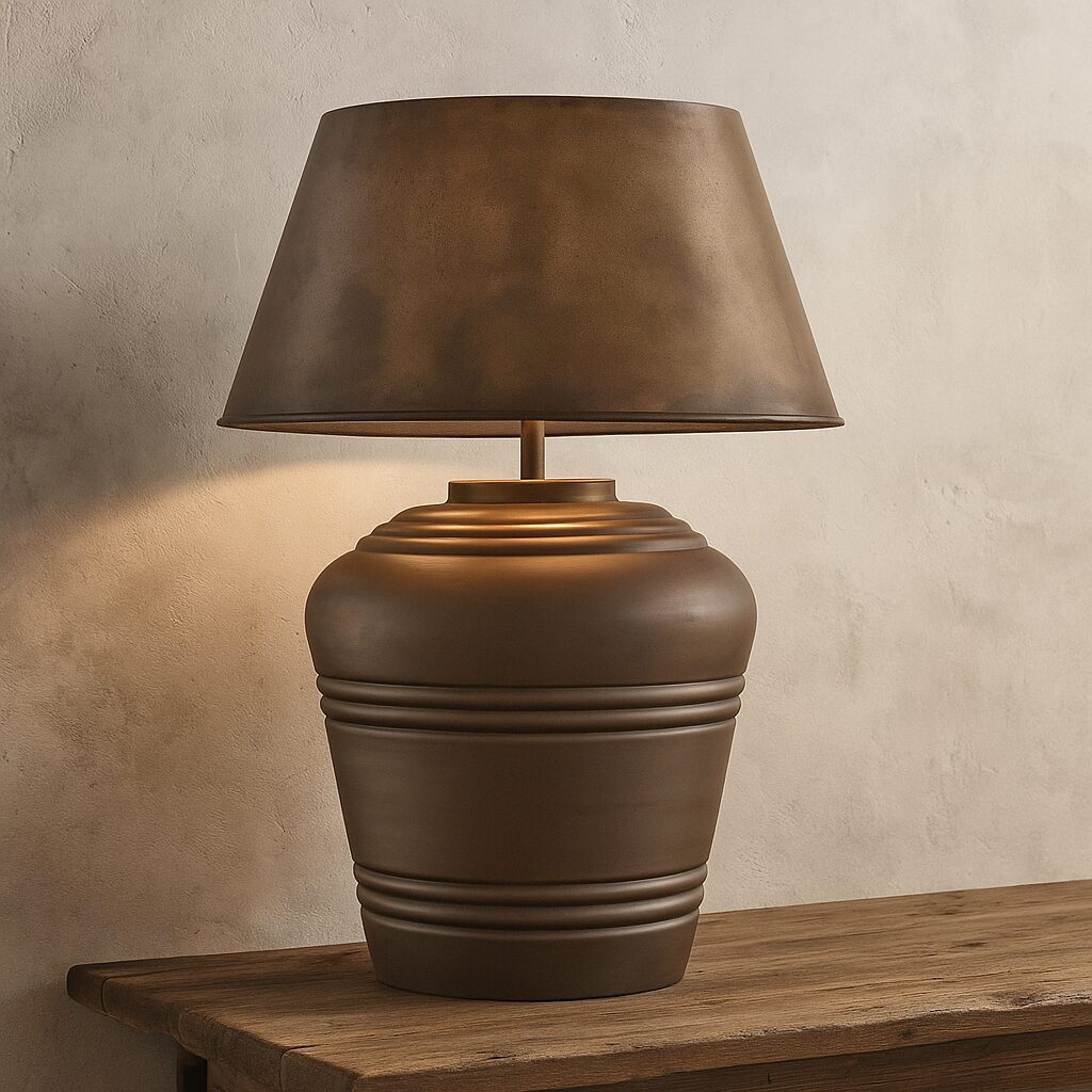 Es ist bemerkenswert, wie gut die Designelemente des gemütlichen, naturverbundenen Landhaus-Stils mit den technisch-funktionalen Elementen des Industrial-Styles zusammenpassen. Wie diese Tischlampe zeigt, ergänzen sie sich nicht nur perfekt, sondern verleihen den Objekten auch einen einzigartigen Charakter. Der Designer hat für diese Lampe einen Fuß aus hochwertigem Mangoholz angefertigt, der im typischen Landhausstil elegant geformt und mit einem feinen Rillenmuster versehen wurde. Dazu wurde ein Metallschirm hinzugefügt, dessen einfache, konische Form und Antik-Finish an funktionale Industrieleuchten erinnern. Dieser Mix macht die Tischlampe zu einem Blickfang in jeder Umgebung, sowohl tagsüber als auch abends. Ein Tipp: Besorgen Sie sich gleich eine passende Glühbirne, damit Sie die Tischlampe direkt nach der Lieferung mit dem praktischen Kippschalter einschalten können.