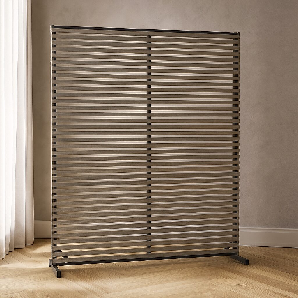 Wenn Sie einen privaten Bereich auf Ihrer Terrasse schaffen möchten, ohne umfangreiche Umbauten durchführen zu müssen, oder sich einfach vor neugierigen Blicken der Nachbarschaft schützen wollen, dann könnte eine Sichtschutzwand die Lösung sein. Allerdings sind diese nicht immer optisch ansprechend. Doch das ändert sich jetzt mit unserer Trennwand, die durch ihr exzellentes und qualitatives Design besticht. Sie besteht aus feinen Kempasholzleisten, die von beiden Seiten betrachtet ästhetisch wirken und zudem äußerst robust und langlebig sind. Die standfesten Füße sind aus korrosionsbeständigem Aluminium gefertigt. Die Trennwand ist nicht nur praktisch, sondern auch flexibel, da sie nicht fest installiert wird und somit nach Bedarf einfach umgestellt werden kann.