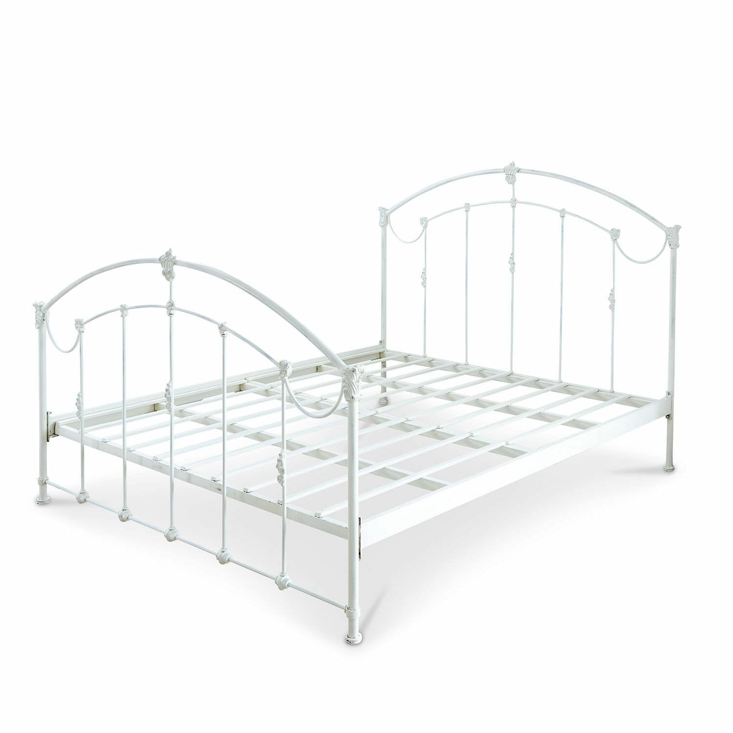 Fans des Shabby-Chic werden sich in dieses Bett verlieben, denn es ist ein Traum in Eisen. Das kunstvolle Design besteht aus geschwungenen Linien und feinen Verzierungen im Antik-Look. Romantisch und authentisch wirkt es wie aus vergangenen Zeiten – Liebhaber des Vintage-Stils werden dieses luxuriöse und wunderschöne Modell lieben. Das gesamte Bett besteht aus Eisen, was es stabil und langlebig macht. Die beiden Lattenroste sind ebenfalls aus Eisen gefertigt und sehr belastbar, können aber auch herausgenommen werden. Ein oder zwei Personen finden bequem Platz in diesem Schmuckstück. Freuen Sie sich auf traumhafte Nächte und kombinieren Sie das elegante Bett mit passender Bettwäsche, die in Shabby-Chic-Stil mit Rüschen oder Stickereien verziert sein kann. Erleben Sie zauberhafte Nächte in diesem dekorativen Eisenbett, das Sie lange begleiten wird. Eine Matratze ist nicht enthalten – entscheiden Sie selbst, ob Sie eine große Einzelmatratze oder zwei einzelne wählen möchten.