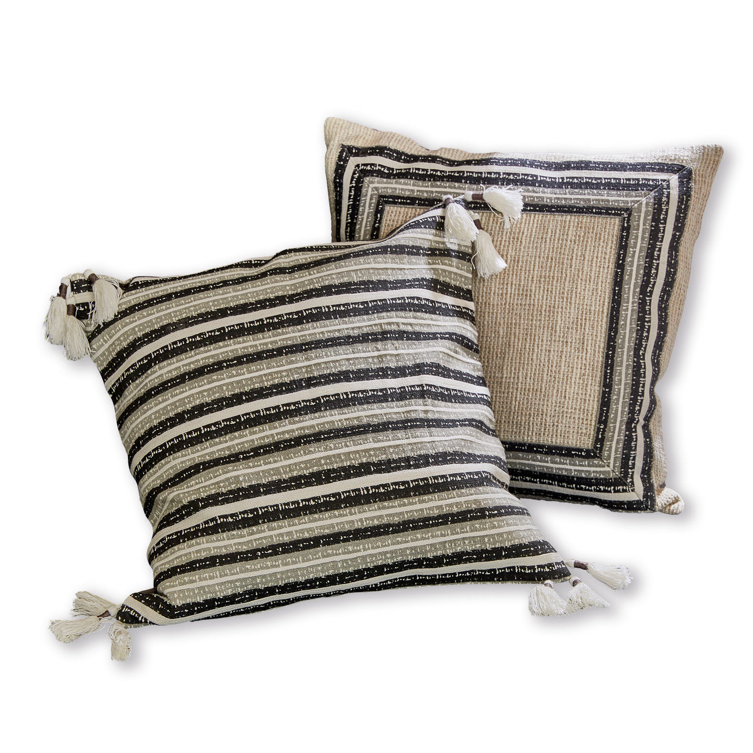 Für eine schnelle und effektive Veränderung Ihres gemütlichen Sofas oder Ihrer einladenden Flur-Bank, sind diese Kissenhüllen im Doppelpack die perfekte Lösung. Sie kommen in edlen Farben und zwei verschiedenen Designs daher, die eine klare Linie vermitteln, aber dennoch nicht langweilig wirken. Der Druck auf der Vorderseite ist mit schönen Stickerei-Details veredelt, die jedem Stück eine besondere Eleganz und einen einzigartigen Charme verleihen. Als Grundlage dient robustes, elegantes und waschbares Baumwollgewebe. Um einen qualitativ hochwertigen Gesamteindruck zu erzeugen, ist die Vorderseite sorgfältig gefüttert. Ein praktischer Reißverschluss auf der Rückseite vervollständigt die Accessoires. Überzeugen Sie sich selbst von der Vielseitigkeit dieser Wohnaccessoires – sie passen perfekt in ein gemütliches Landhaus, einen dezenten nordischen Stil oder einen modernen Stadthaus-Look.