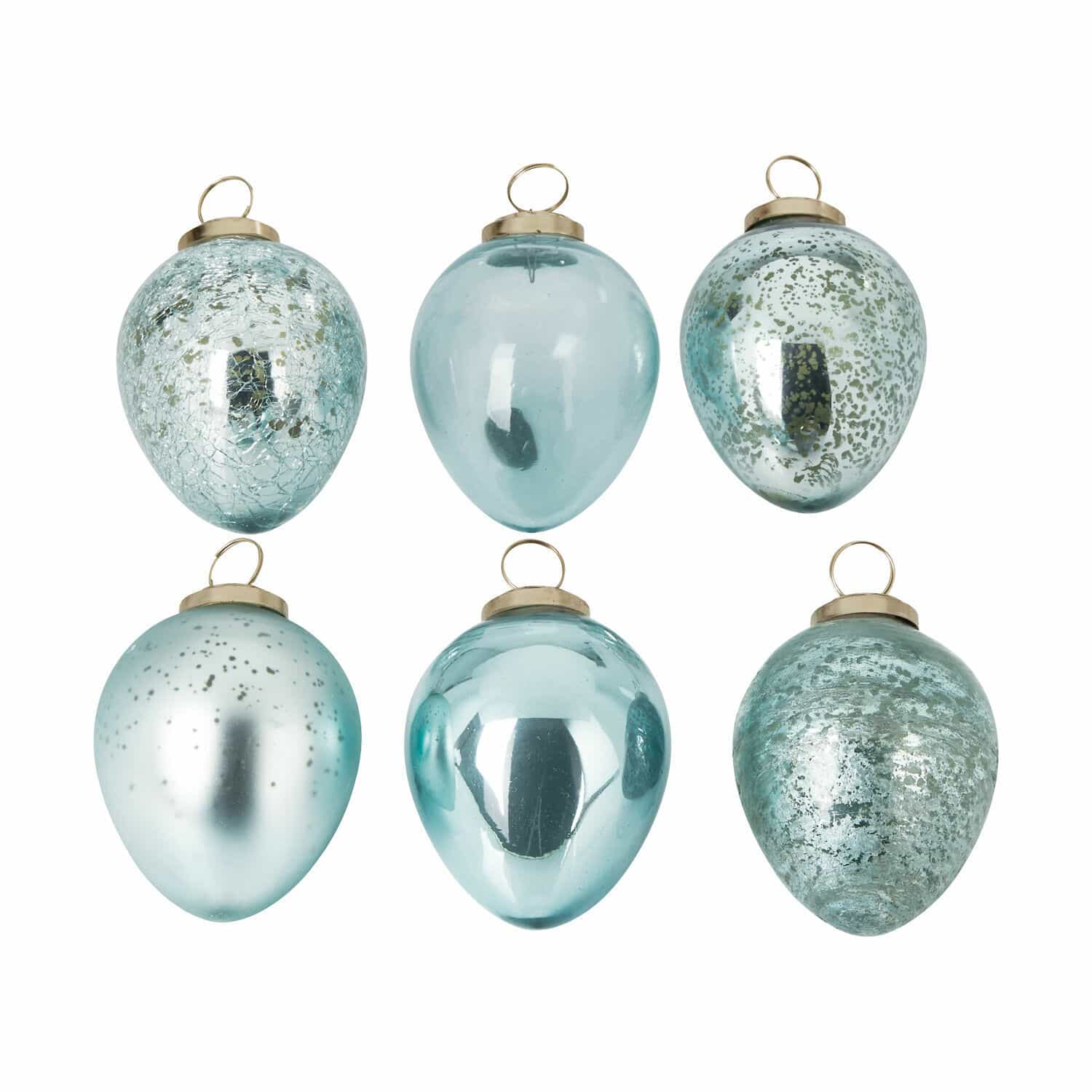 Dieses exquisite Ensemble aus sechs mundgeblasenen Glaselementen verzaubert mit seinen vielfältigen, attraktiven Oberflächenstrukturen und sanften Pastelltönen, die sowohl Harmonie als auch Vielfalt im Design gewährleisten. Der subtile metallische Schimmer verleiht ihnen bei Lichteinfall ein wunderschönes Leuchten und ein ausgeklügeltes Funkeln. Die sechs eleganten Deko-Eier können problemlos an Ästen, Arrangements oder sogar in einer Schüssel platziert werden, dank der integrierten Metallösen für einfaches Aufhängen. Lassen Sie sich von dem Spiel der unterschiedlichen Facetten begeistern und schaffen Sie eine geschmackvolle Atmosphäre für das Osterfest, die den ganzen Frühling über für Heiterkeit sorgt. Sie sind ein herrliches Highlight für den Shabby-Chic-Stil und eine echte Augenweide auf dem Tisch oder am Fenster. Feiern Sie die Feiertage mit solch entzückenden Accessoires, die eine zusätzliche Portion Dekorationsfreude und Charme mitbringen und sie immer wieder neu in Ihr Zuhause verlieben lassen.