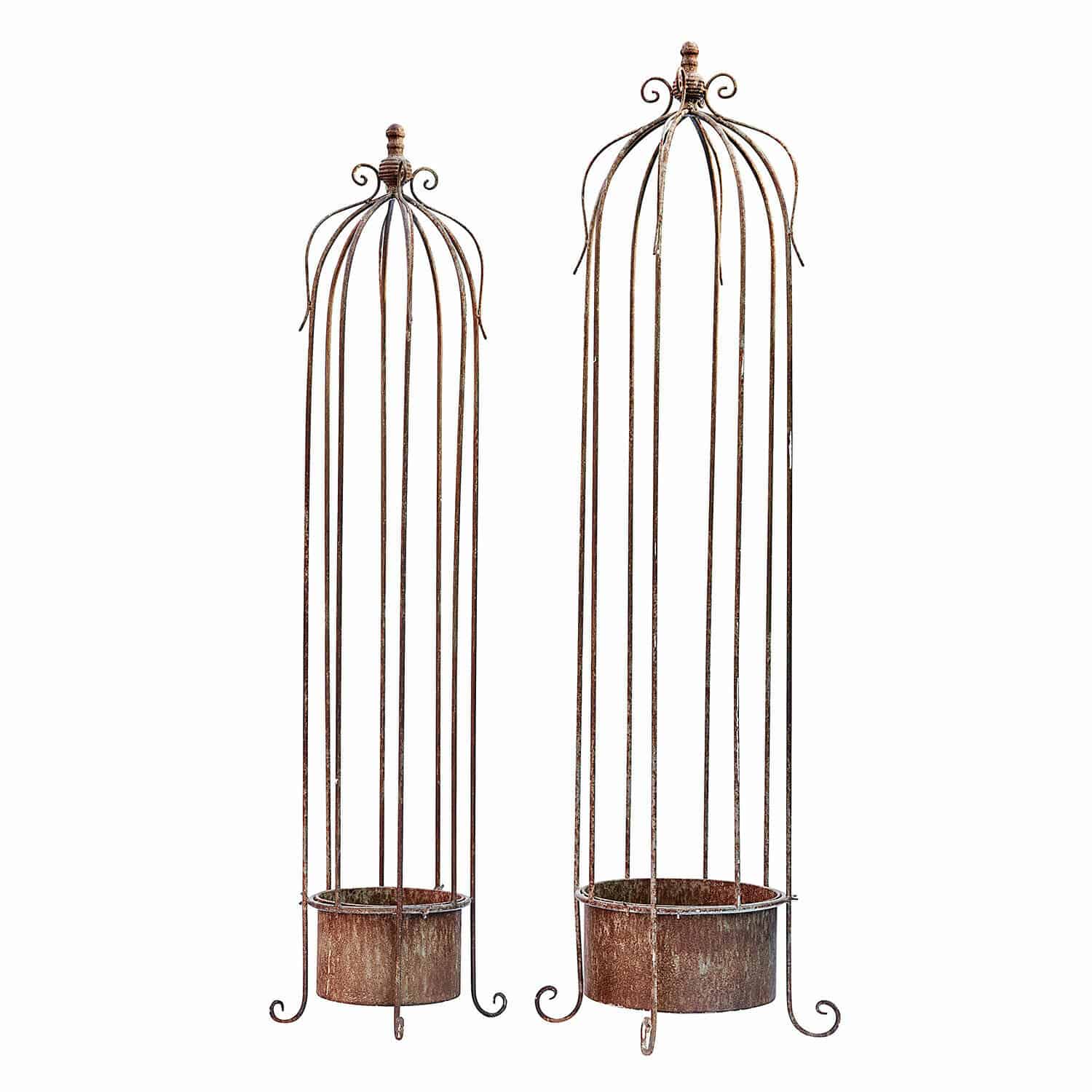 Mit dem Einsatz dieses Rankhilfe-Sets bringen Sie einen nostalgischen Touch in Ihren Garten. Die beiden Rankhilfen, hergestellt aus widerstandsfähigem Eisen und in unterschiedlichen Größen erhältlich, verströmen einen ländlichen Charme, der durch das antike Rost-Finish hervorgehoben wird. Sie sind perfekt geeignet für Rosen, Efeu oder Clematis – die dekorativen Eisenstangen bieten Ihren Pflanzen optimalen Halt und machen sie zu einem Highlight in Ihrem Garten oder auf Ihrer Terrasse. Ob einzeln oder im Paar platziert, diese Rankhilfen sind sowohl funktional als auch ästhetisch ansprechend und vermitteln jedem Außenbereich eine romantische Atmosphäre.