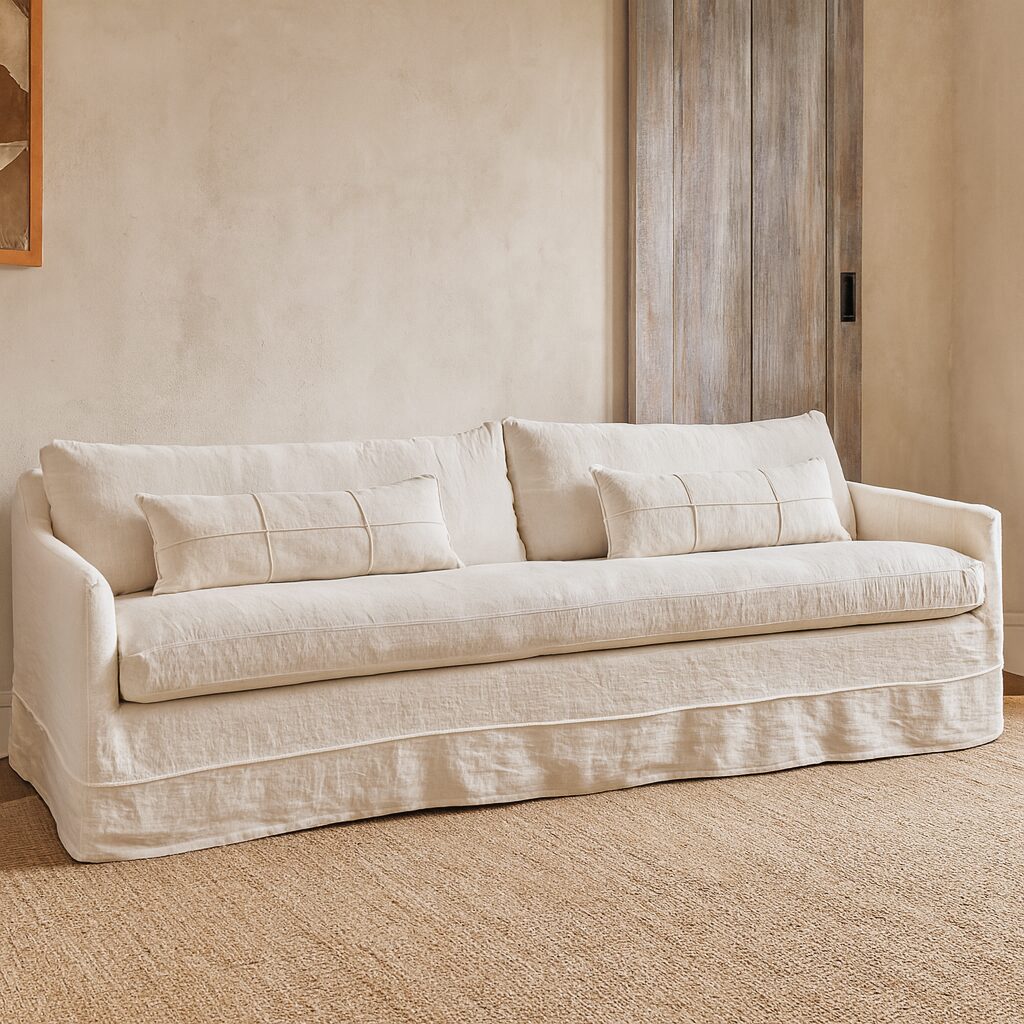 Die Mehrheit der Menschen haben eine besonders enge Beziehung zu ihrem Sofa. Es ist der Ort, an dem wir, abgesehen von unserem Bett, die meiste Zeit verbringen. Es dient als gemütlicher Ort zum Fernsehen, Lesen, für ein kurzes Schläfchen oder lange Abende mit guten Freunden. Daher ist die Auswahl des richtigen Sofas von großer Bedeutung. Das „Hardyn“ Sofa könnte Ihr neues Lieblingsmöbelstück sein. Dieser stilvolle 3,5-Sitzer fällt sofort durch sein elegantes Design und seine klare Linie auf, die ihn vielseitig einsetzbar machen und eine angenehme Ruhe ausstrahlen. Dieses gemütliche Sofa mit Lounge-Atmosphäre und zwei extralangen Rückenkissen ist sowohl für den gepflegten Landhaus-Stil, den verspielten Shabby-Chic oder den minimalistischen skandinavischen Look geeignet. „Hardyn“ bietet durch seine hochwertige Polsterung, bestehend aus einer Mischung aus Schaumstoff und echten Federn, besonderen Komfort und Gemütlichkeit. Nachhaltigkeit und Langlebigkeit sind ebenfalls gegeben: Das robuste Grundgestell besteht aus massivem Kiefernholz und der Bezug aus reinem Leinen.