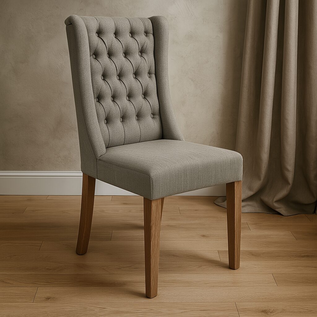 Dieser wunderschöne Stuhl verleiht jedem Raum eine besondere Eleganz und wird schnell zum Lieblingsstück. Das handgefertigte Design beeindruckt mit einem hochwertigen Bezug und der edlen Chesterfield-Steppung, die dem Stuhl zusätzlichen Charakter verleiht. Sein Gestell aus kostbarem Eschenholz im Antik-Finish harmoniert perfekt mit den geschwungenen Linien und der sanften Farbgebung, die das stilvolle Design abrunden. Dank der bequemen Polsterung bietet er zudem höchsten Komfort. Der Stuhl passt hervorragend zu Landhaus-Stil und Shabby-Chic und macht sowohl am Arbeitstisch, Schminktisch oder Esstisch eine gute Figur – ein stilvolles Möbelstück, das zum Verweilen einlädt.