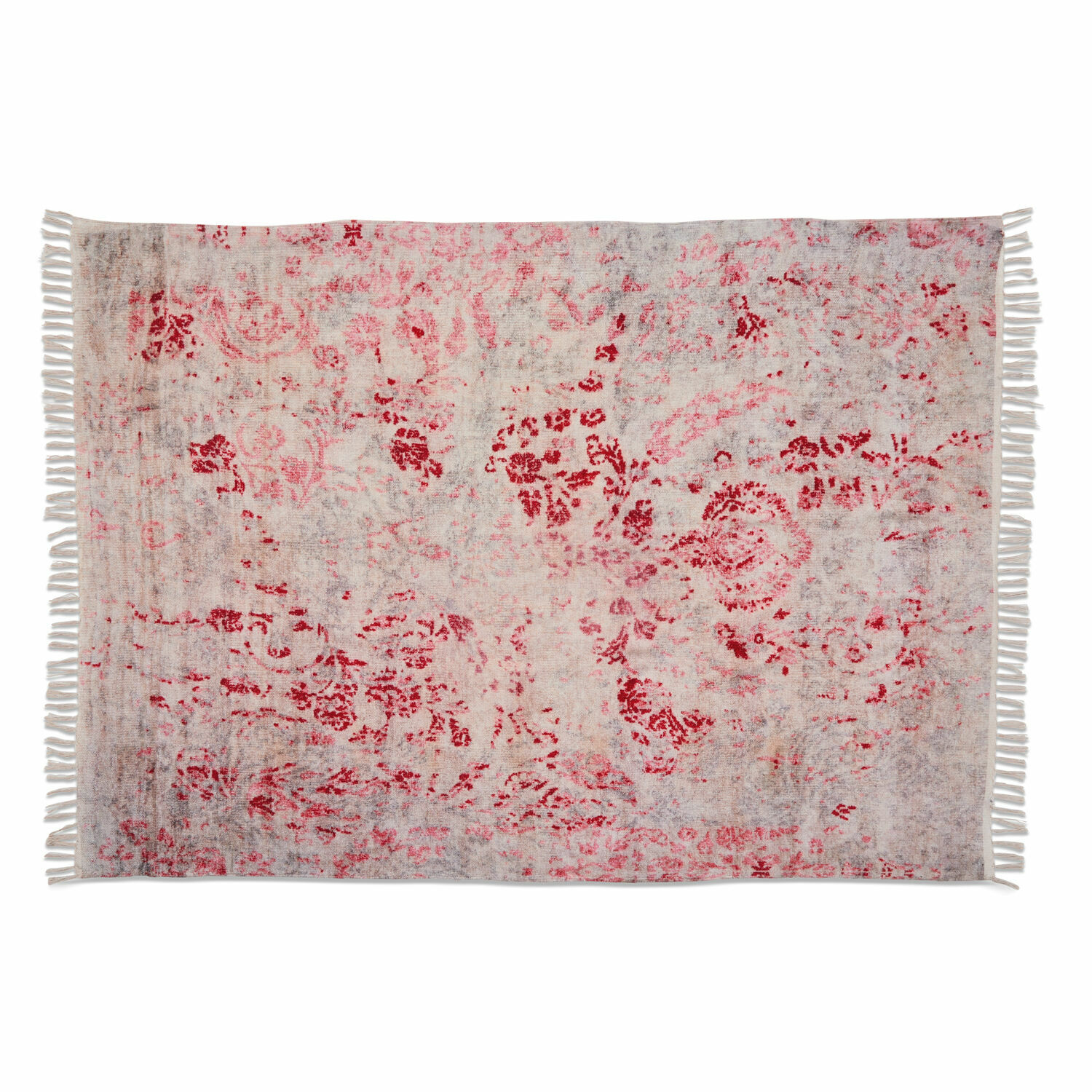 Ein Teppich im Stil des Orients schafft ein exklusives Raumgefühl. Er erinnert an die berühmten Erzählungen aus Tausend und einer Nacht und an opulente Salons, in denen solche kostbaren Kunstwerke den Boden schmückten. Einzigartig faszinierend ist ein Teppich, dessen traditionelles Muster aus reichhaltigen Ornamenten und dynamischen Arabesken an einigen Stellen nur noch schwach zu erkennen ist, während es an anderen Stellen noch klarer zu sehen ist – als ob im Laufe der Zeit hunderte von Füßen über den Teppich gelaufen wären oder als ob die südliche Sonne die Farben ausgebleicht hätte. Allerdings können wir Ihnen versichern, dass weder das eine noch das andere der Grund für diese exklusive Optik ist. Vielmehr ist es das Talent des Textilkünstlers, der das Druckdesign für diesen Teppich kreiert hat. Neben dem unverwechselbaren Look in manchmal zarten, manchmal kräftigeren Rosatönen bietet er auch ein märchenhaftes Gefühl beim Berühren. Im Gegensatz zu vielen echten Orientteppichen ist dieses Modell nicht aus schwerer, dicker Wolle gefertigt, sondern aus einem leichten, seidenweichen Viskose-Baumwoll-Mix gewebt, was das Barfußlaufen darauf zu einem Vergnügen macht.