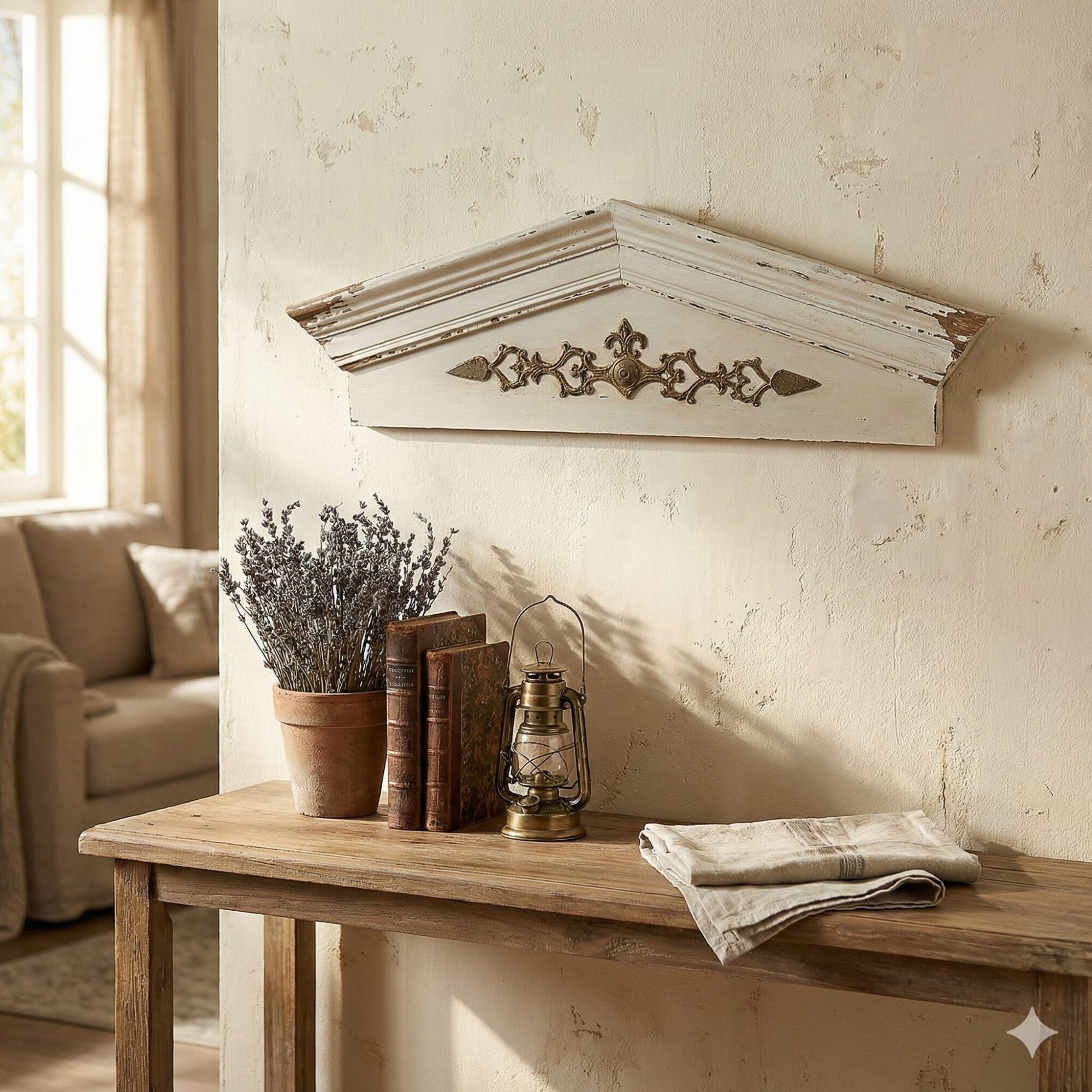 Geben Sie Ihren Wänden einen Hauch von Magie mit unserem bezaubernden Wanddekor. Der antike Weißton wird durch das Aufbringen und anschließende Entfernen mehrerer Farbschichten erzeugt, was einen unverwechselbaren Look kreiert. Das Dekor sticht durch seine detaillierten Verzierungen hervor und harmoniert ideal mit Shabby Chic- und Landhausstil-Interieurs. Ob es nun über der Tür, dem Bett oder an anderen Orten platziert wird, das Wanddekor wird sicherlich zum Hingucker in Ihrem Heim. Lassen Sie sich in die Ära des Vintage-Zaubers entführen und verleihen Sie Ihren Räumen einen Hauch von Eleganz und Nostalgie.