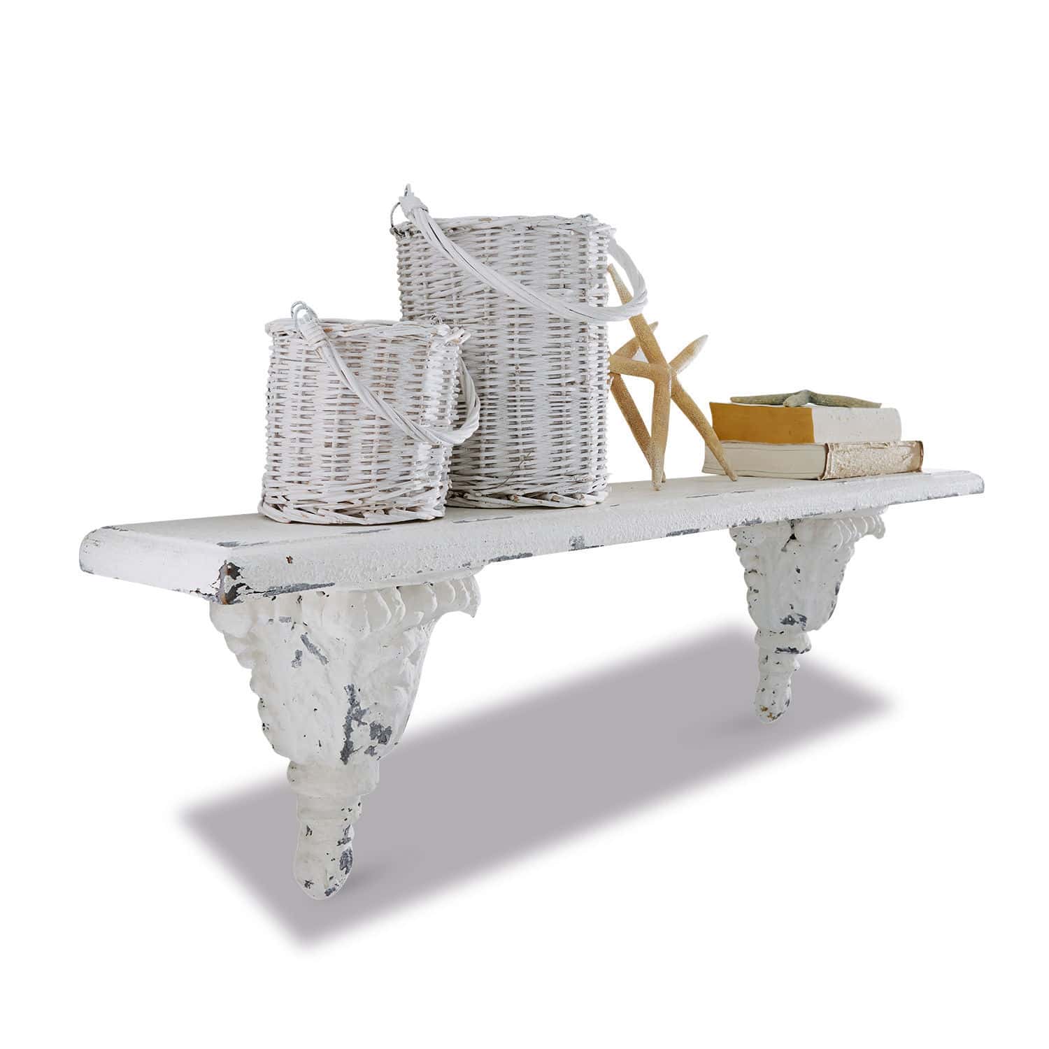 Diese Möbelstücke mit ihren hellen Farbtönen, bezaubernden Vintage-Akzenten und kunstvollen Ornamenten strahlen eine romantische Anziehungskraft aus und füllen den Raum mit einer einzigartigen, traumhaften Stimmung. Dieses entzückende Stück unterstreicht diese Eigenschaften auf eine besonders charmante Art und Weise. Die herrlichen Halterungen mit ihren romantischen Verzierungen sind ein echter Hingucker. Das authentische Antik-Finish unterstreicht den ansprechenden Shabby-Look. Die Ablagefläche eignet sich ideal für kleinere Gegenstände, beispielsweise saisonale Dekorationsartikel. Im Sommer könnten das Seesterne, Muscheln, Teelichthalter oder kleine geflochtene Körbe mit maritimem Flair sein. Auch Bücher oder Urlaubserinnerungen können auf diesem attraktiven Möbelstück stilvoll präsentiert werden. Im Eingangsbereich könnten Schlüssel und Geldbörse auf der Ablage Platz finden, so dass sie immer griffbereit sind. Es gibt unzählige Einsatzmöglichkeiten für dieses unverzichtbare Möbelstück. Ein wunderschöner Hingucker, der sich auch für kleinere Räume hervorragend eignet, dank seiner platzsparenden Eigenschaften.